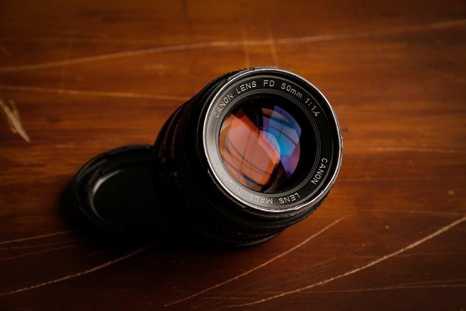The Canon EOS 350D is compatible with all Canon EF lenses, including EF-S lenses, offering versatility for various photography needs. The camera features a 1.6x crop factor, which affects the effective focal length of lenses. While it doesn’t have built-in image stabilization, it supports lenses with IS technology. Popular kit lenses include the EF-S 18-55mm f/3.5-5.6, providing a practical starting point for photographers. This compatibility ensures a wide range of creative possibilities.